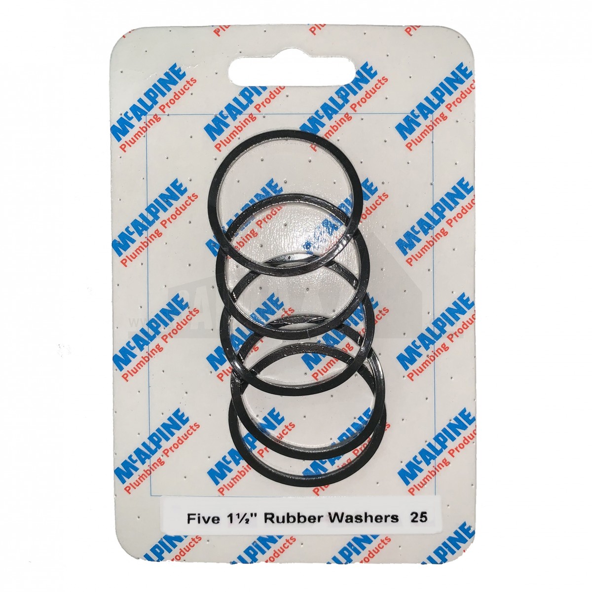 The McAlpine 1.5" Rubber Waste Washers are replacement sealing washers for 1.5 inch waste fittings, supplied in a pack of five. They help create a watertight seal on waste connections in basin, bath and sink pipework.