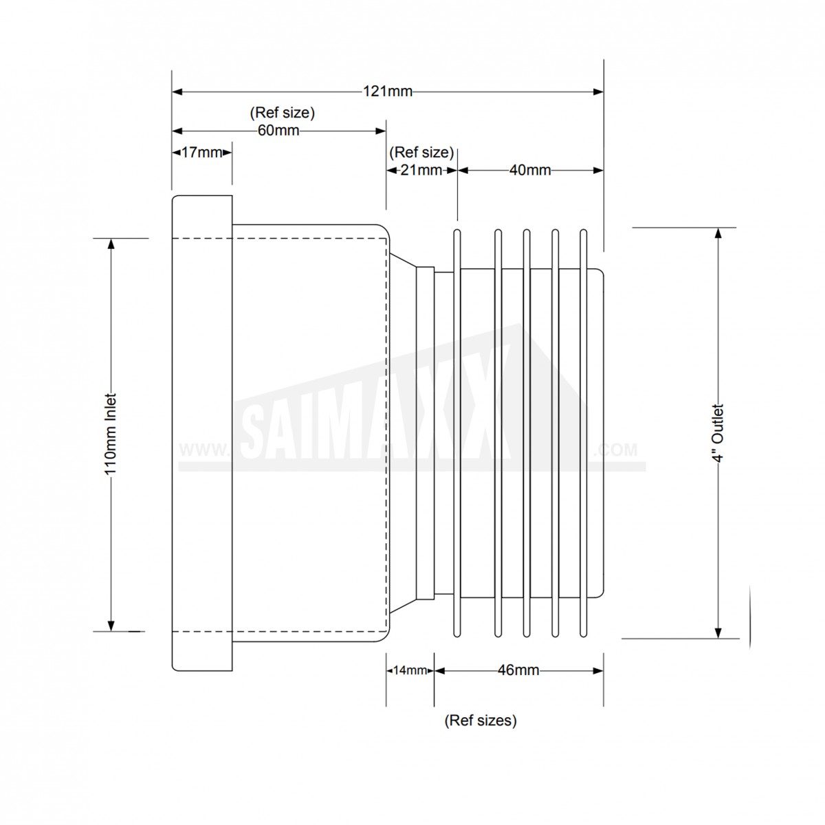 - Finned seal spigot for internal connection to 4"/110mm cast iron, plastic or clay