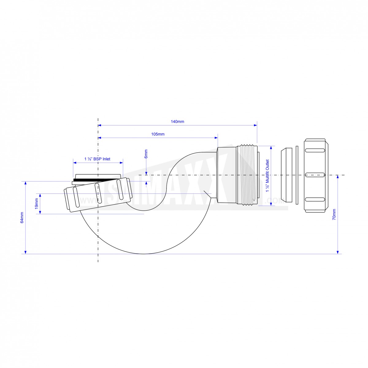 - Multifit Compression Outlet suits all plastic, copper and lead pipe