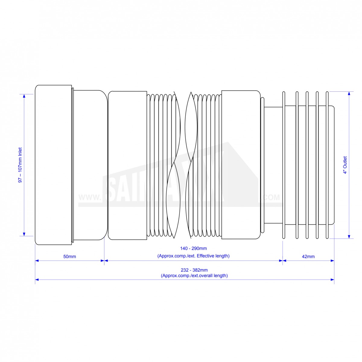 - 97-107mm Inlet suits all pan spigots