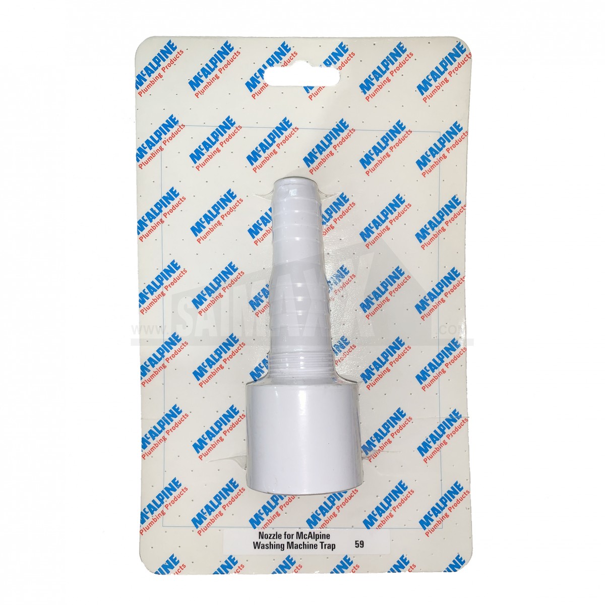 The McAlpine Nozzle for Washing Machine Trap is a replacement outlet connection for a washing machine trap. It provides the spigot needed to attach the appliance waste hose securely.