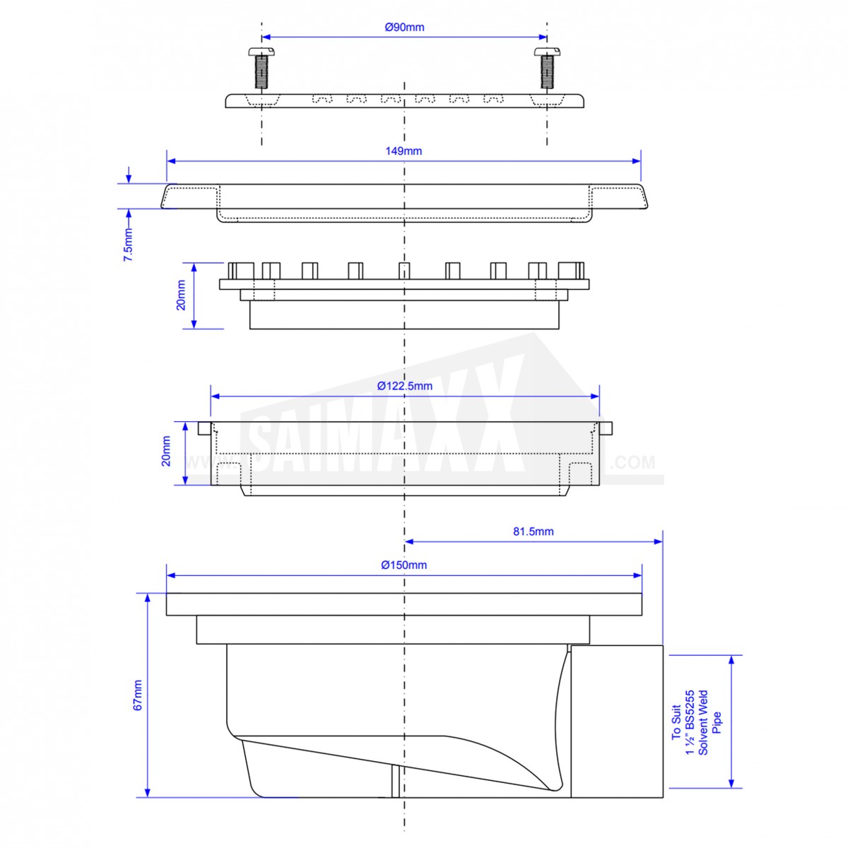 - 1½" BS EN 1329-1:2000 Solvent Weld Horizontal Outlet