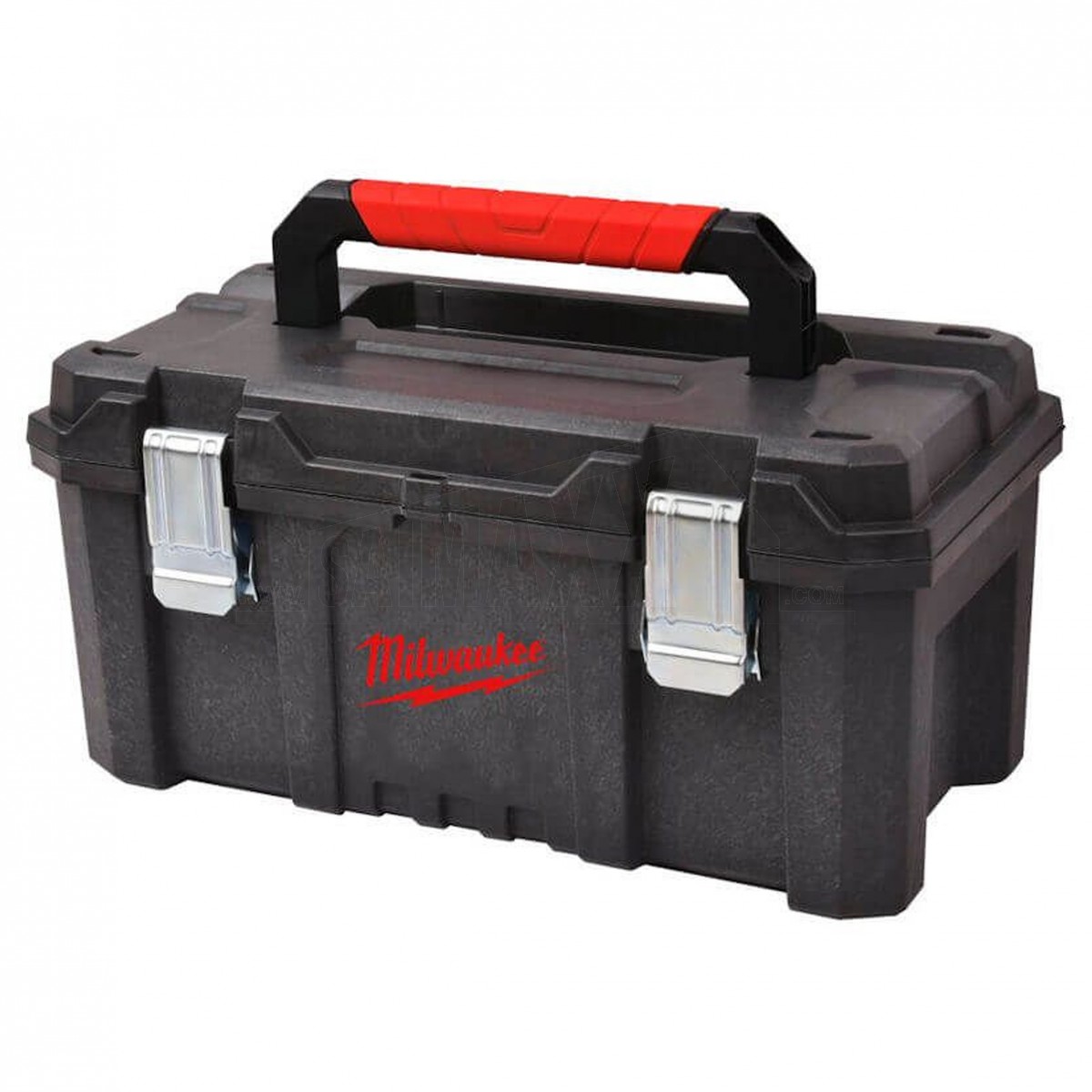 The Milwaukee 21in / 530mm Black Toolbox with Removable Tote Tray is a rigid storage box for carrying hand tools, fixings and site essentials. It includes a removable internal tray to help separate smaller items from larger tools.