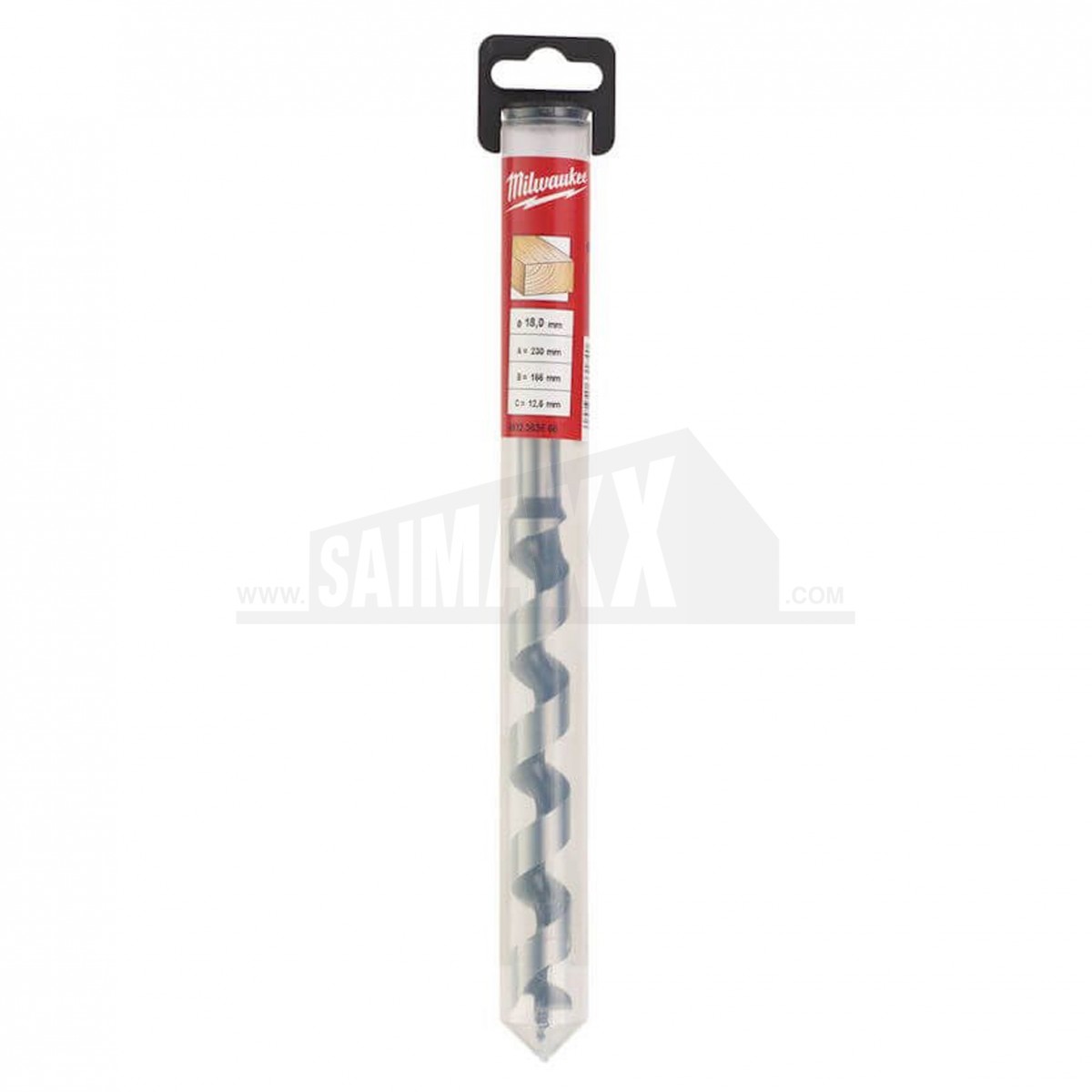 The Milwaukee Auger Bit Hex Shank 18mm x 230mm is a wood-boring bit with a 155mm working length for drilling clean, deep holes in timber. It is suited to use with compatible drills and impact drivers fitted with a hex chuck.