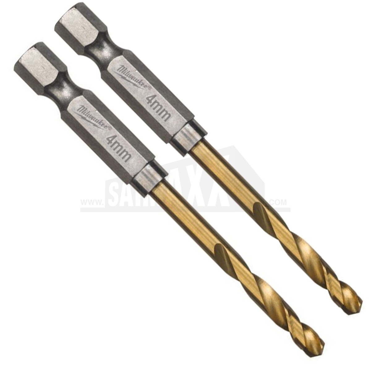 The Milwaukee Shockwave HSS-G Titanium Red Hex Drill Bit 4.0mm 2pk Card is a pair of 4.0mm high speed steel drill bits with a hex shank for quick, secure fitting in power tools. It is intended for drilling metal and other common jobsite materials.