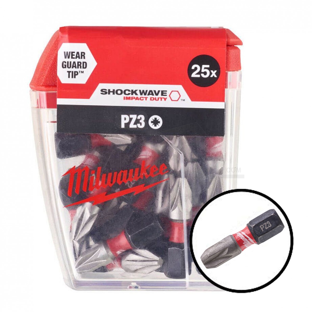 Milwaukee Shockwave Impact Screwdriver Bits PZ3 25pc (25mm Long)