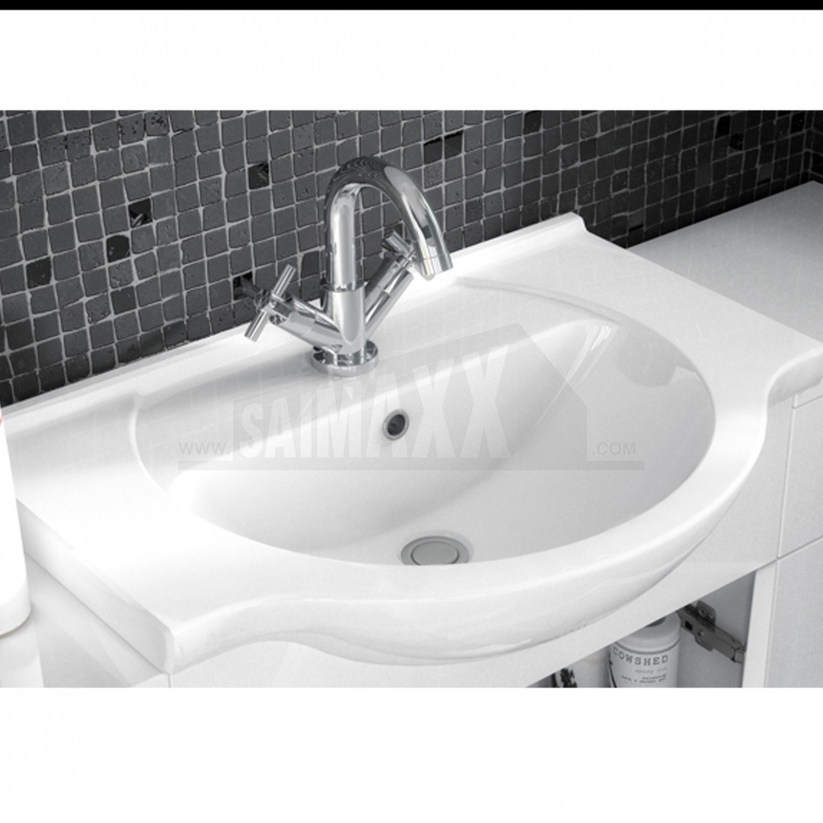 - The gloss white finish compliments any modern bathroom to create a designer look
