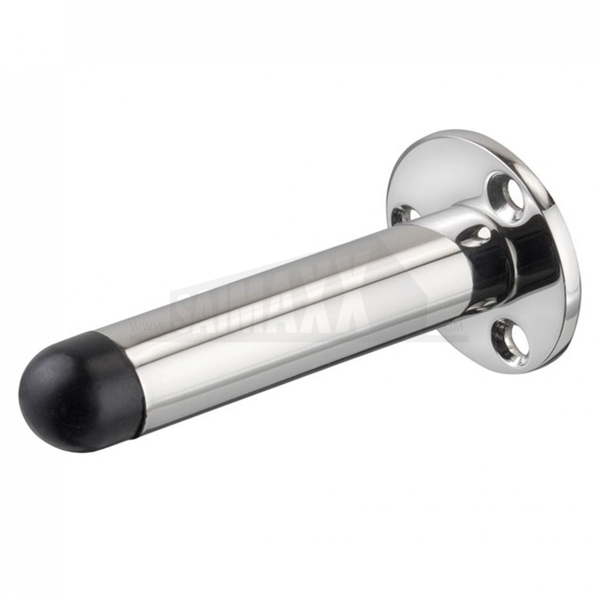 A Projecting Door Stop Front Fixing/Wall Mounted 3" (75mm) Polished Chrome is a wall-mounted door stop designed to protect walls and skirting from door and handle impact. It provides a durable polished chrome finish for internal door hardware settings.