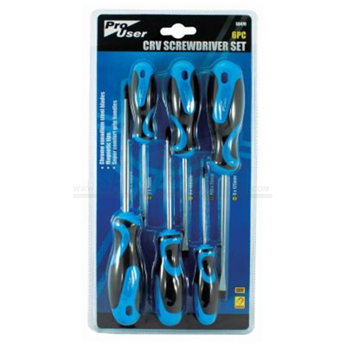 The ProUser 6pc CRV Screwdriver Set provides a practical selection of chrome vanadium screwdrivers for everyday fastening work. It is suited to trade and DIY use for driving and removing a range of common screw types.