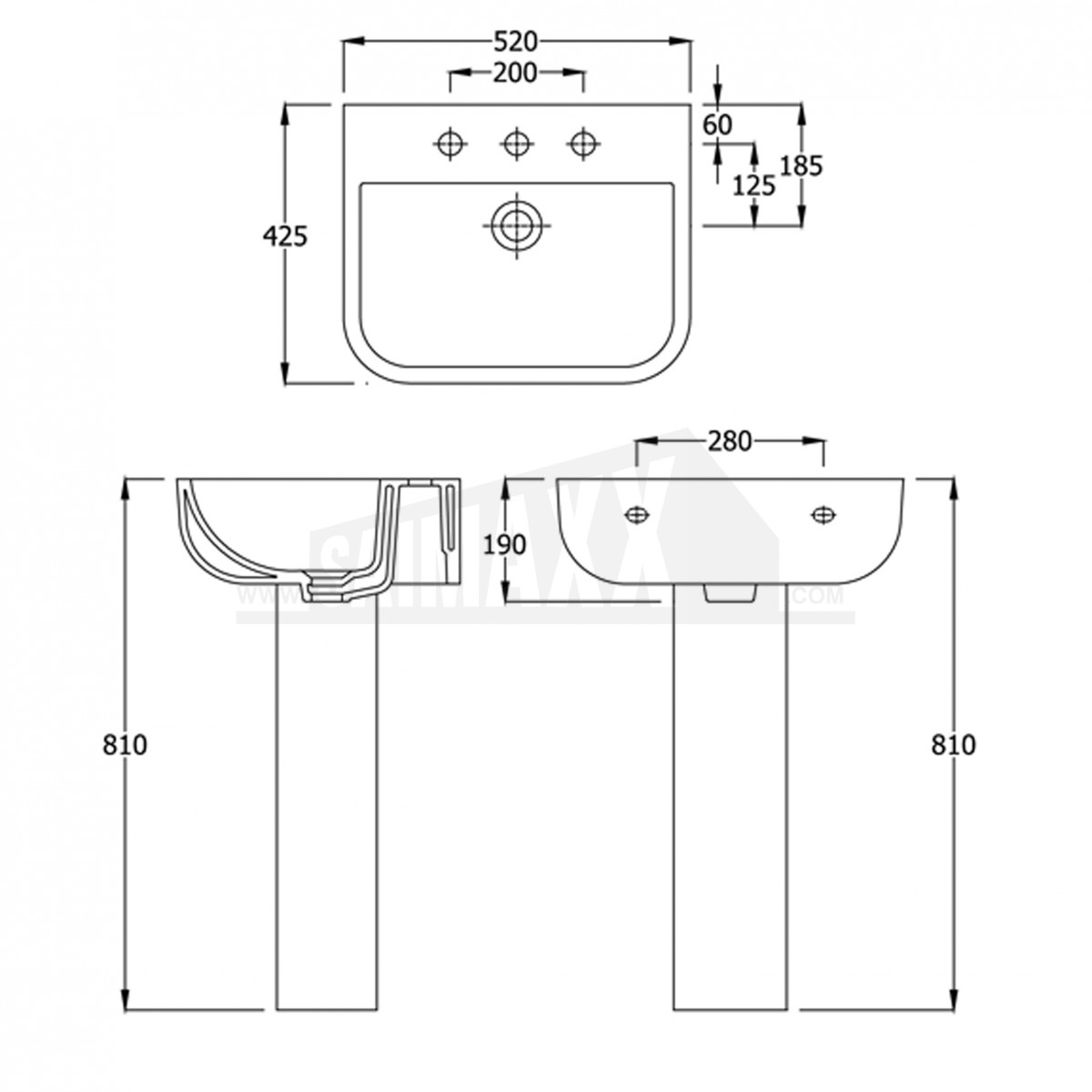 - Shape of Basin: Rounded Rectangle