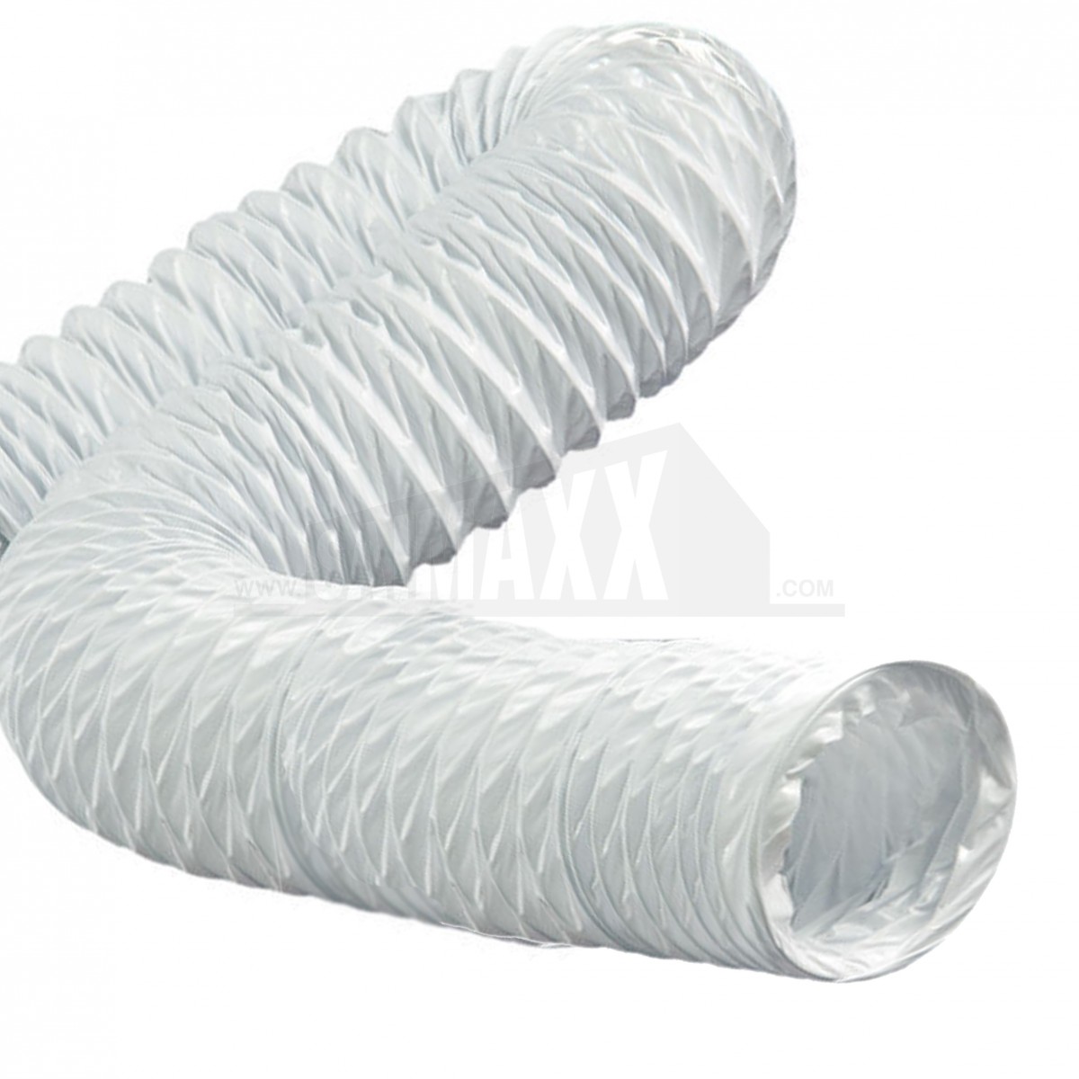 A round white PVC flexible ducting hose with a 102mm diameter supplied in a 45m coil in a box for ventilation systems. It is suited to long duct runs where lightweight flexible air distribution is needed.