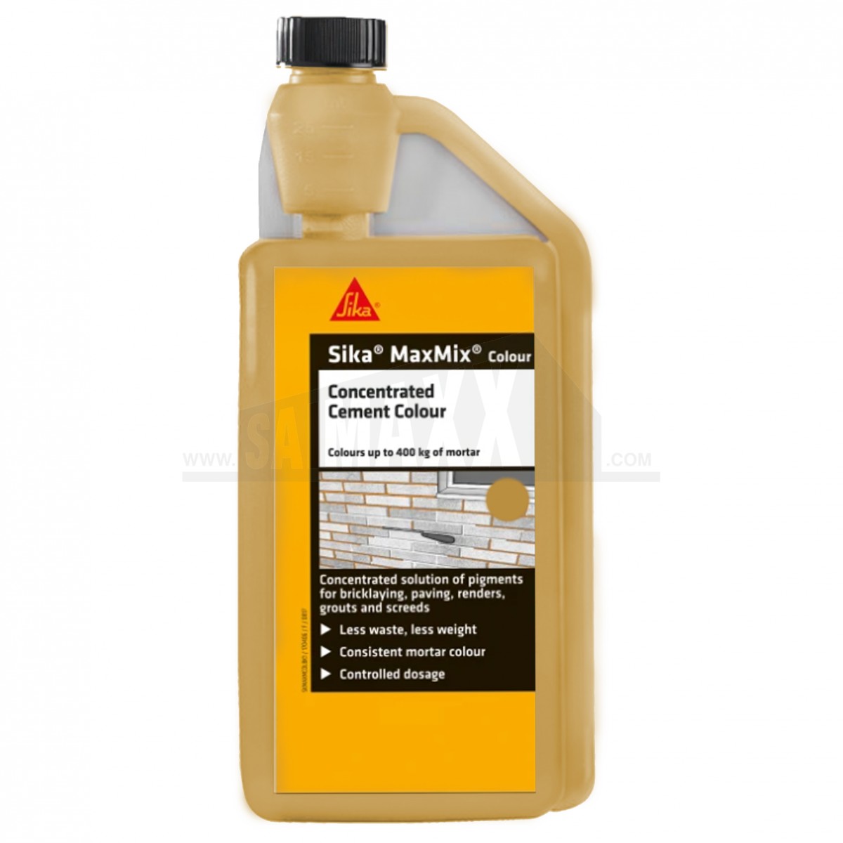Sika Maxmix Colour is a concentrated one shot cement colorant that provides a permanent colour to all types of mortars, rendering, concrete and pointing. The liquid disperses evenly through the mix, to give a uniform shade for each mix batch. Shading can be adjusted to give a wide variety of colour depths. CE marked under EN12878.