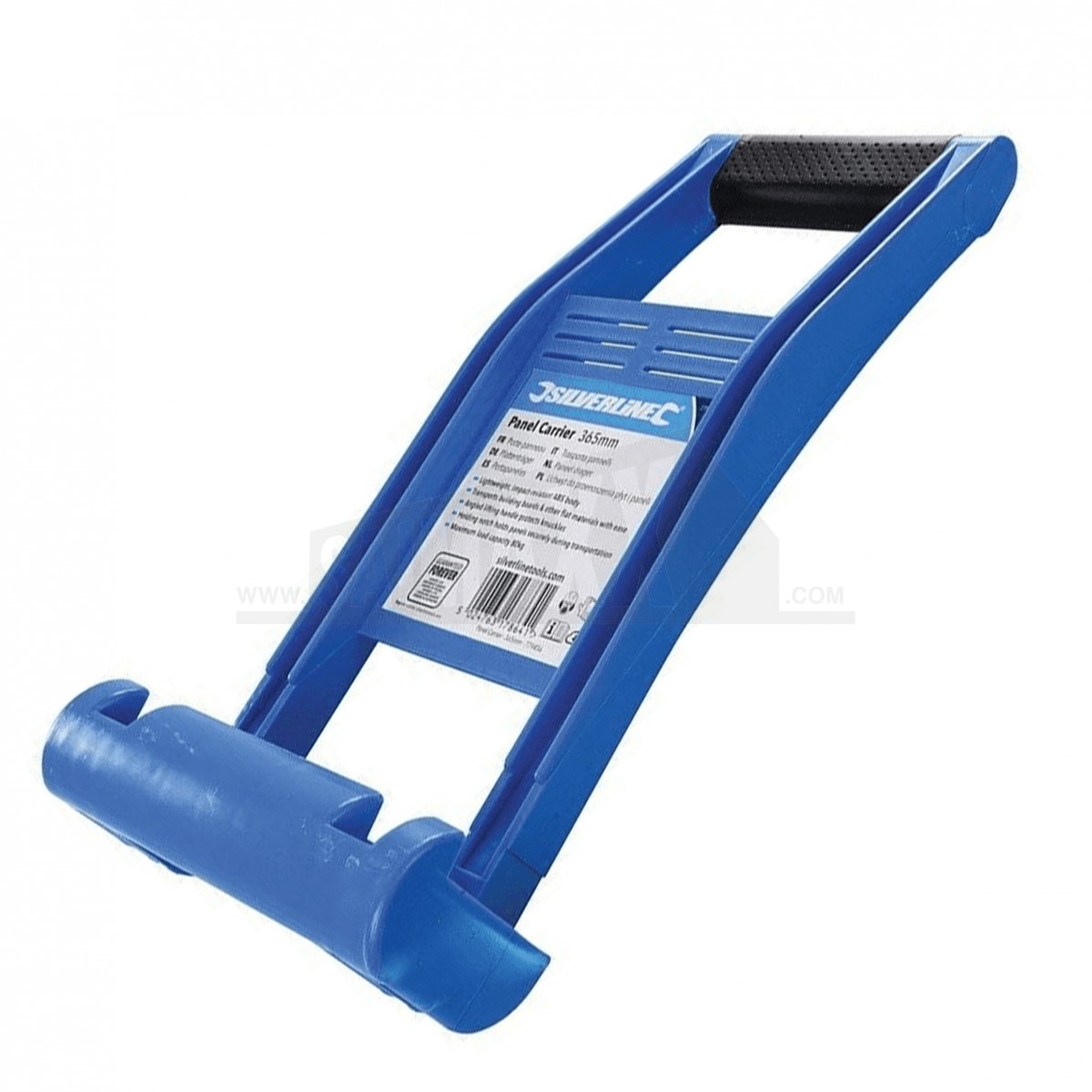 The Silverline Panel Board Carrier is a 365mm hand tool for lifting and carrying sheet materials more securely. It improves grip and control when moving boards, panels and similar bulky items on site.
