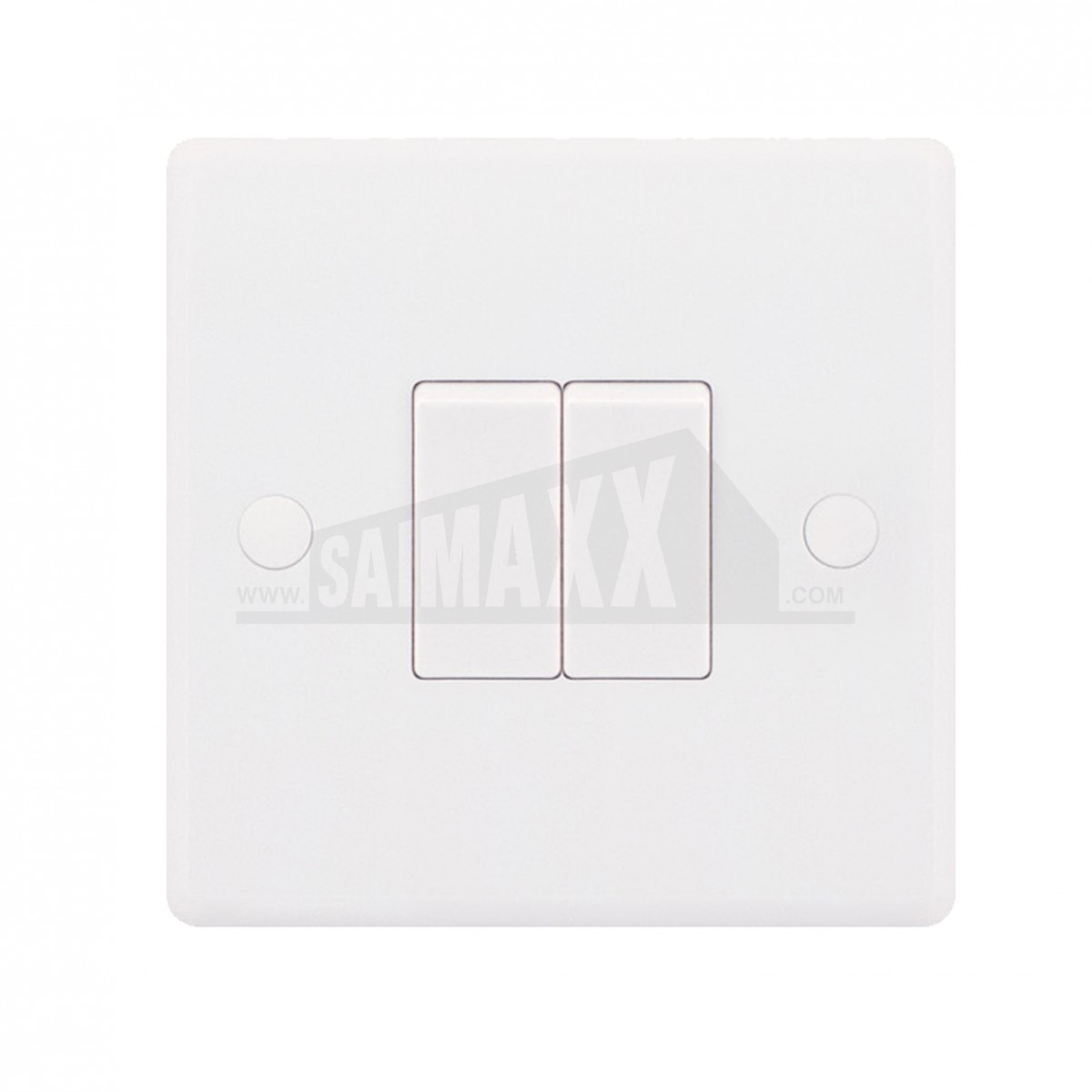 A Smooth Edge 2 gang 2 way light switch in white plastic allows two lighting circuits to be controlled, each from two locations. It gives a tidy, low-profile finish for interior electrical fittings.