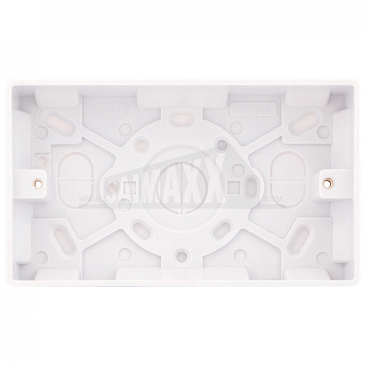 The Smooth Edge 2 gang surface pattress is a 25mm deep white plastic back box for surface mounting double gang electrical accessories. It provides space for wiring and secure fixing where flush boxes are not used.