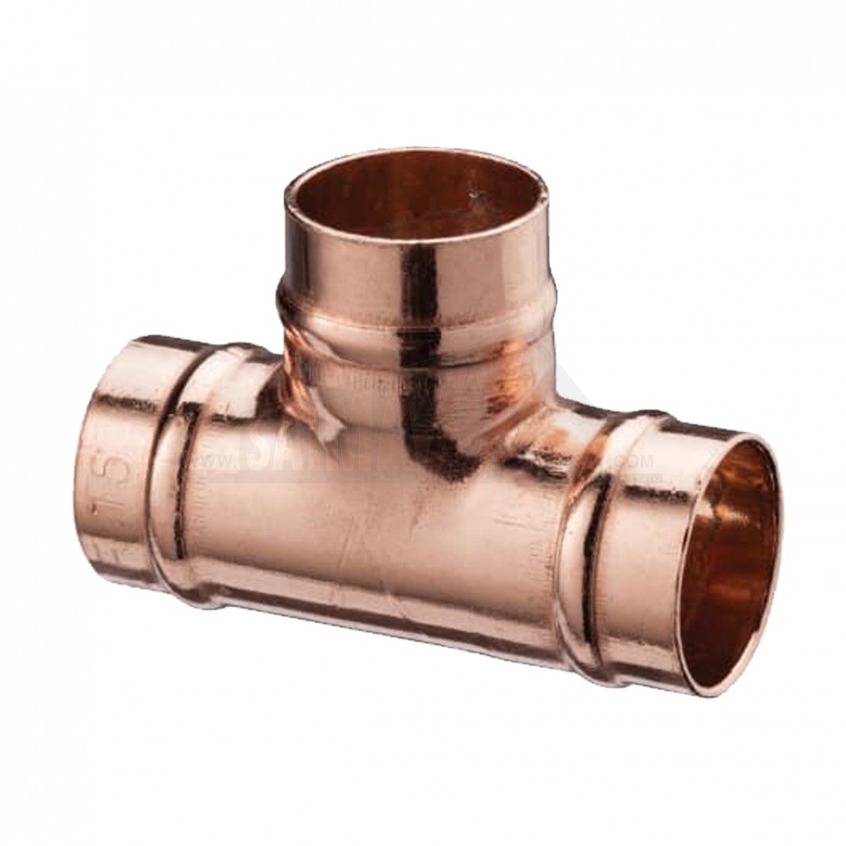 A Solder Ring Copper Equal Tee 15mm is a pre-soldered capillary fitting for branching 15mm copper pipe into three equal connections. It is used where a straight run needs a matching outlet in plumbing and heating systems.