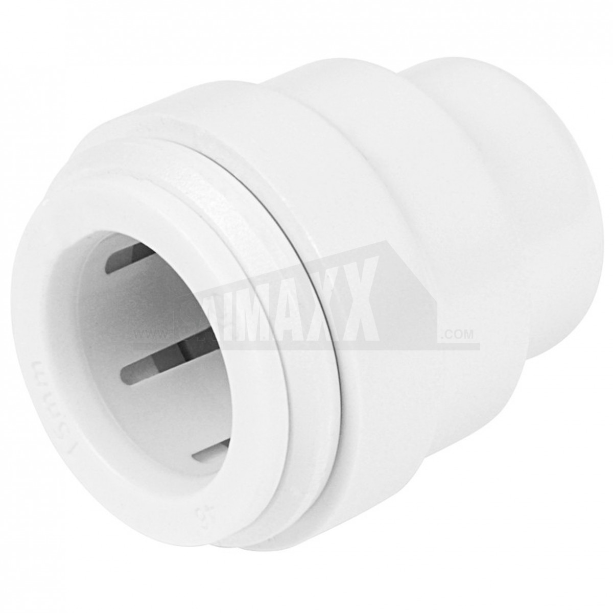 Push-fit plastic fitting for the connection of plastic and copper pipe. Designed, manufactured and assembled in the UK by John Guest Speedfit.