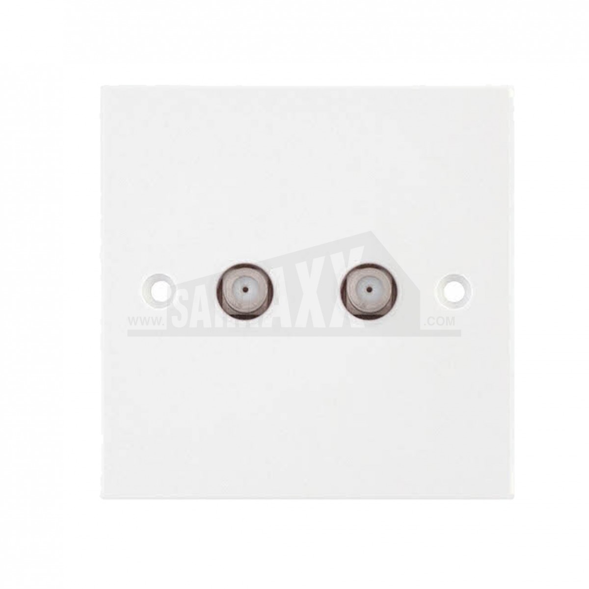 A Square Edge 2 Gang Satellite Flush Socket provides twin flush-mounted connection points for satellite coaxial cables. It is used where two satellite outlets are required on a single wall faceplate.
