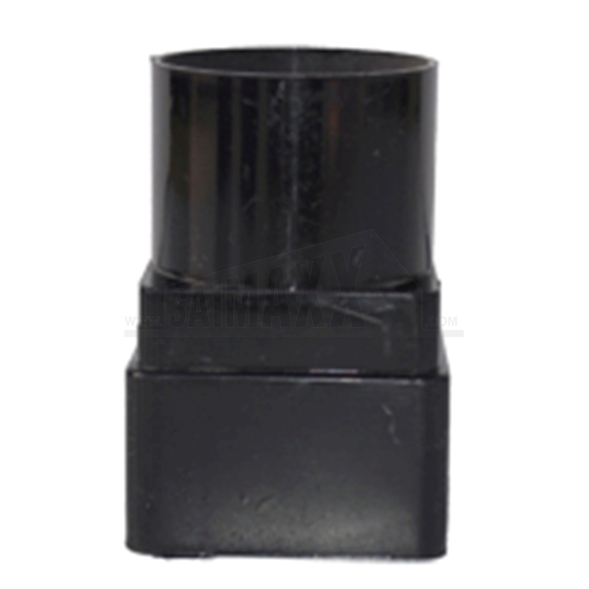 A Square to Round 68mm Downpipe Adaptor (Joint) Black connects square downpipe to 68mm round downpipe. It provides a transition joint between different rainwater pipe profiles.