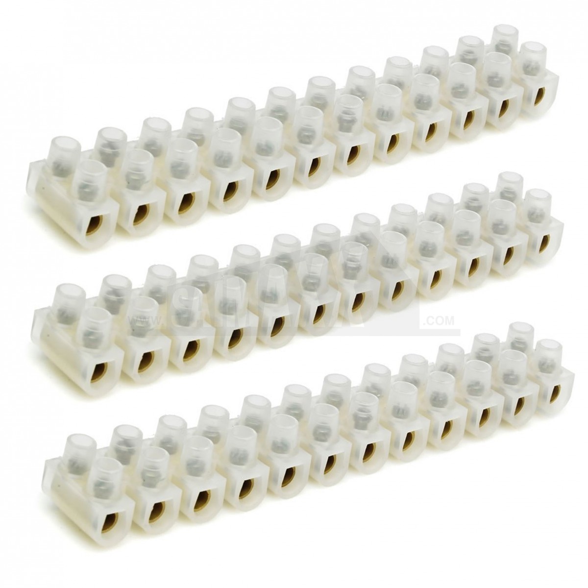 The Status 5 Amp Terminal Blocks 3pc Pack includes three terminal blocks for joining low-load electrical conductors securely. They are suitable for creating insulated wire connections in light-duty electrical work.