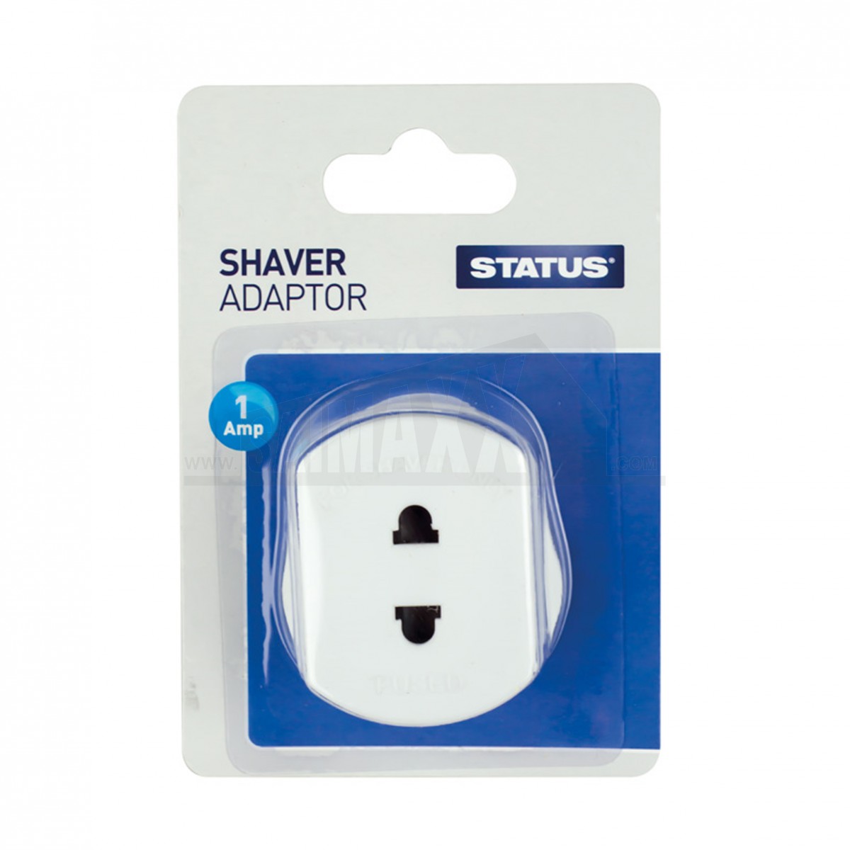 The Status White Shaver Adaptor 1amp is a plug-in adaptor for connecting low-power shaver plugs to a standard socket. It is suitable for bathroom and travel use where a 1A shaver connection is needed.