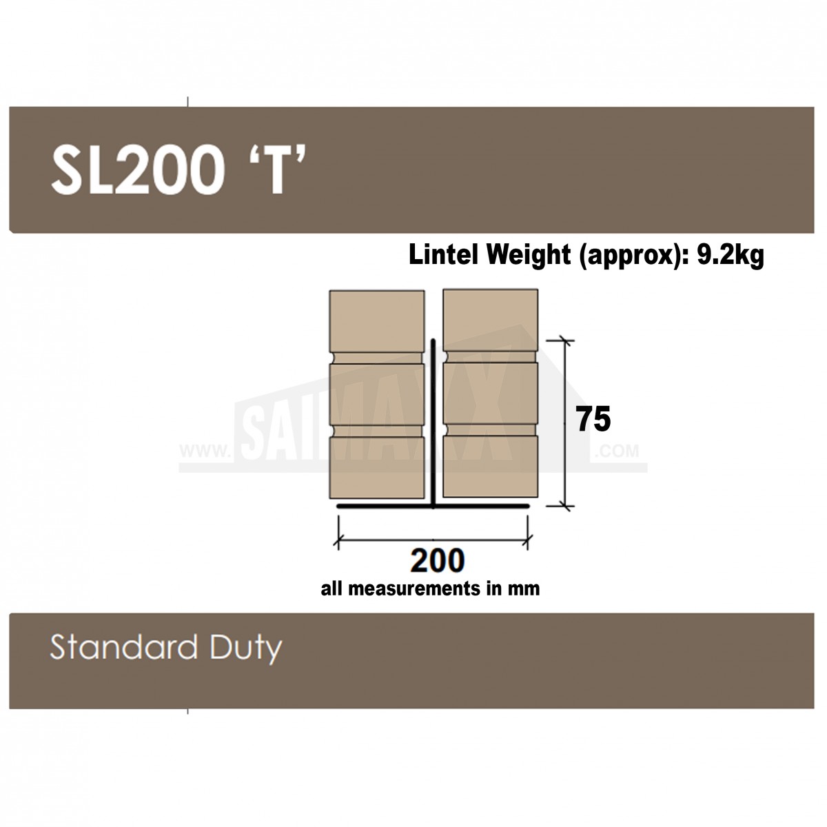 Stressline SL200T inverted T-shaped external solid wall steel lintels are easy to install, and the galvanised finish means they are tough and durable. This range of lintels are designed for standard loads.