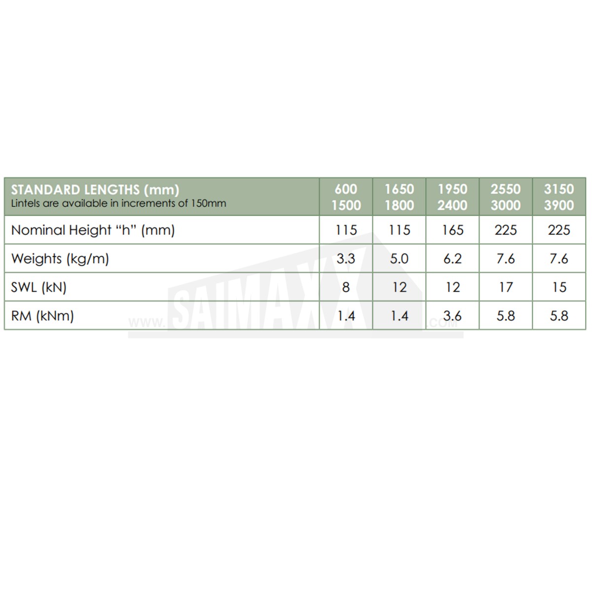 (Data taken from Stressline Lintels Comparison Chart March 2022. Please note it is the customer’s responsibility to ensure the correct lintel is being selected. Click here to open the Stressline Lintels Comparison Chart).