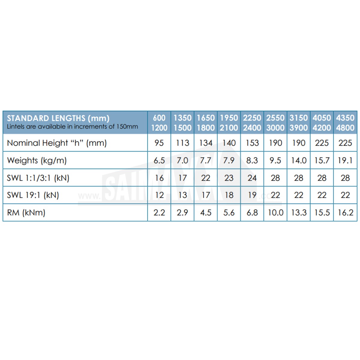 (Data taken from Stressline Lintels Comparison Chart March 2022. Please note it is the customer’s responsibility to ensure the correct lintel is being selected. Click here to open the Stressline Lintels Comparison Chart).