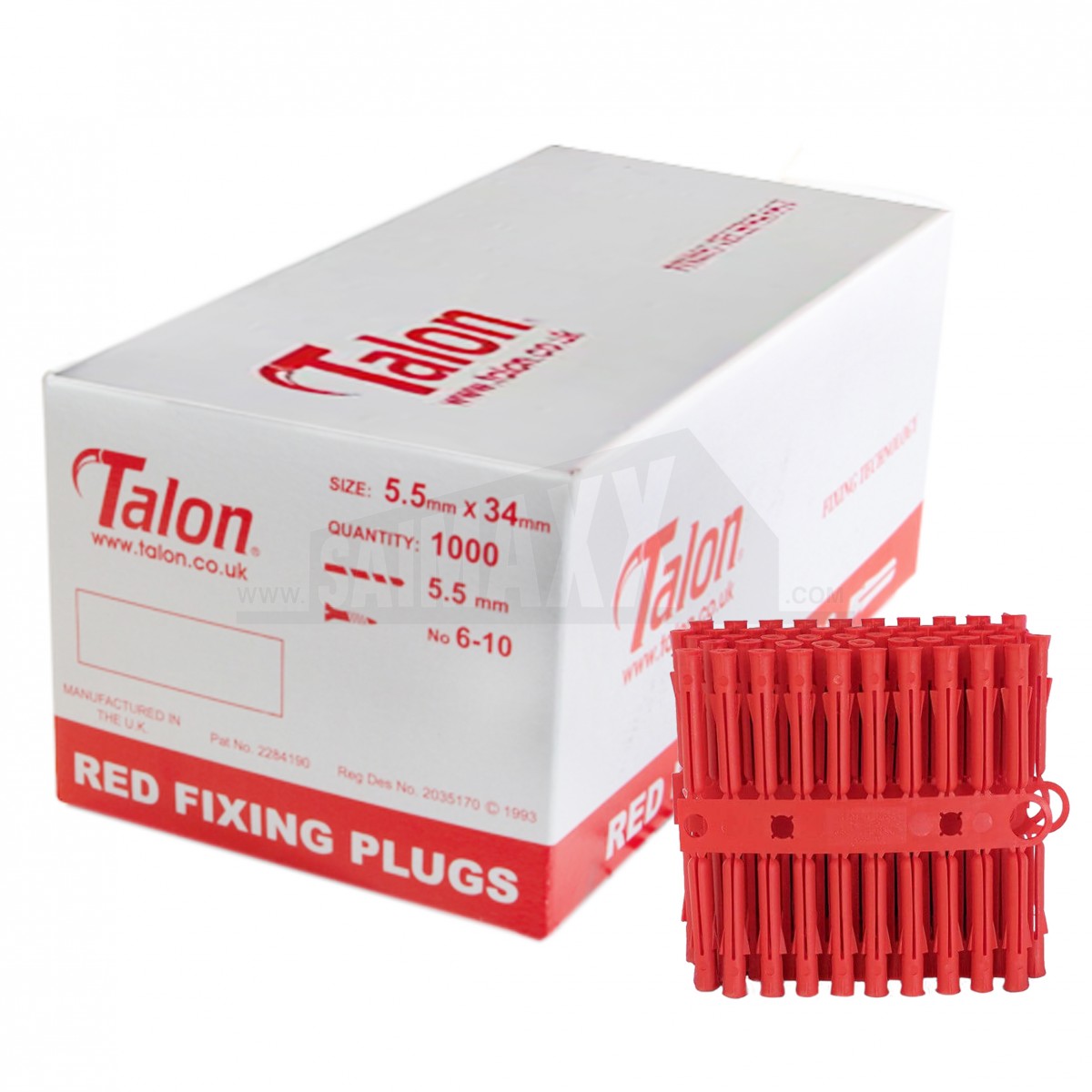 The Talon Fixing Wall Plugs 1000pc Trade Pack Box Red is a bulk pack of red wall plugs for securing screws into masonry and other solid backgrounds. It provides a convenient trade quantity for repetitive fixing work on site or in the workshop.
