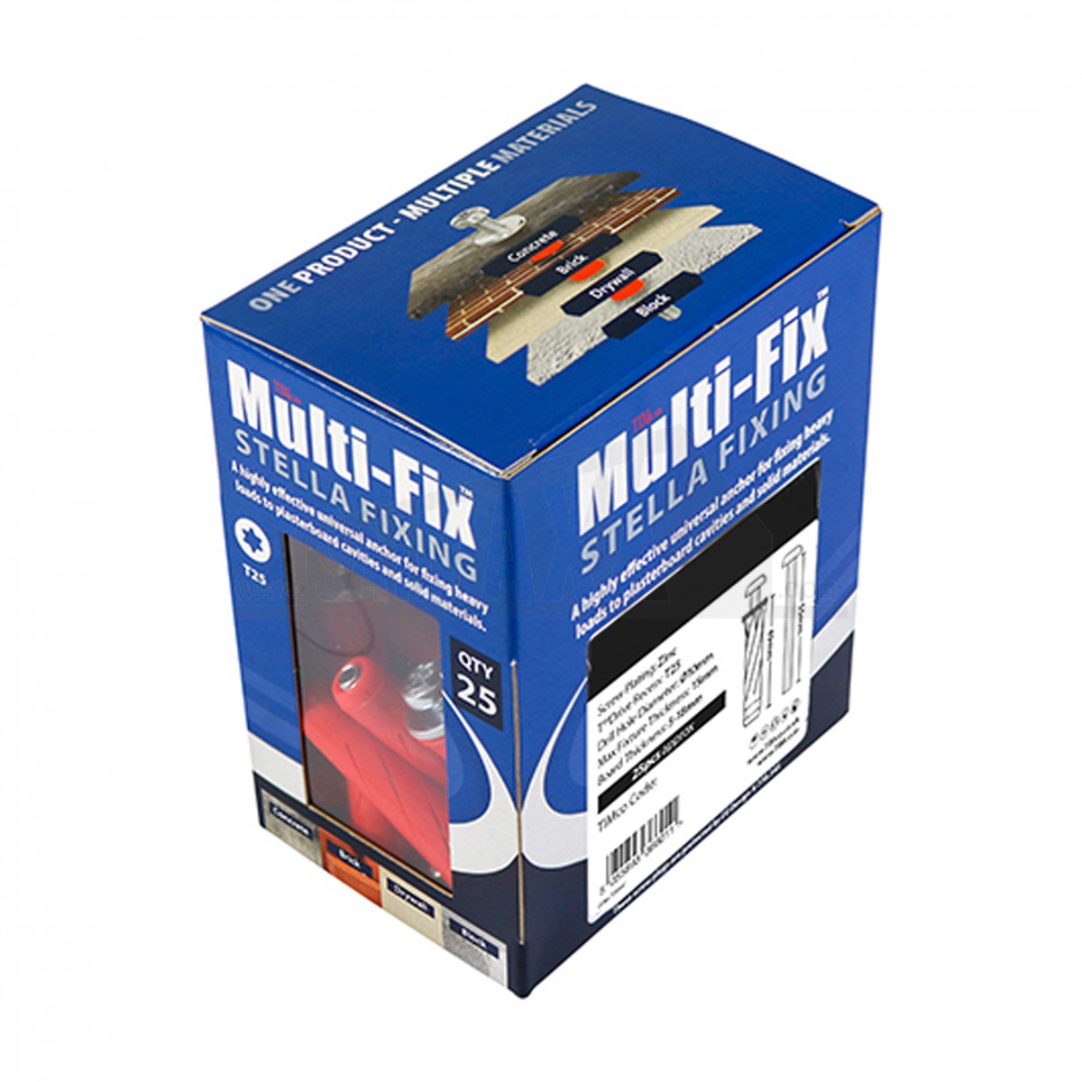 The Timco Multi-Fix Stella Fixings / Anchors M5 x 55mm Red 25pc Box is a cavity fixing designed for secure anchoring in hollow walls and sheet materials. It provides an M5 fixing point with a 55mm length for medium-duty internal fittings.