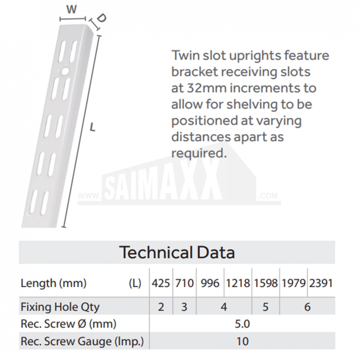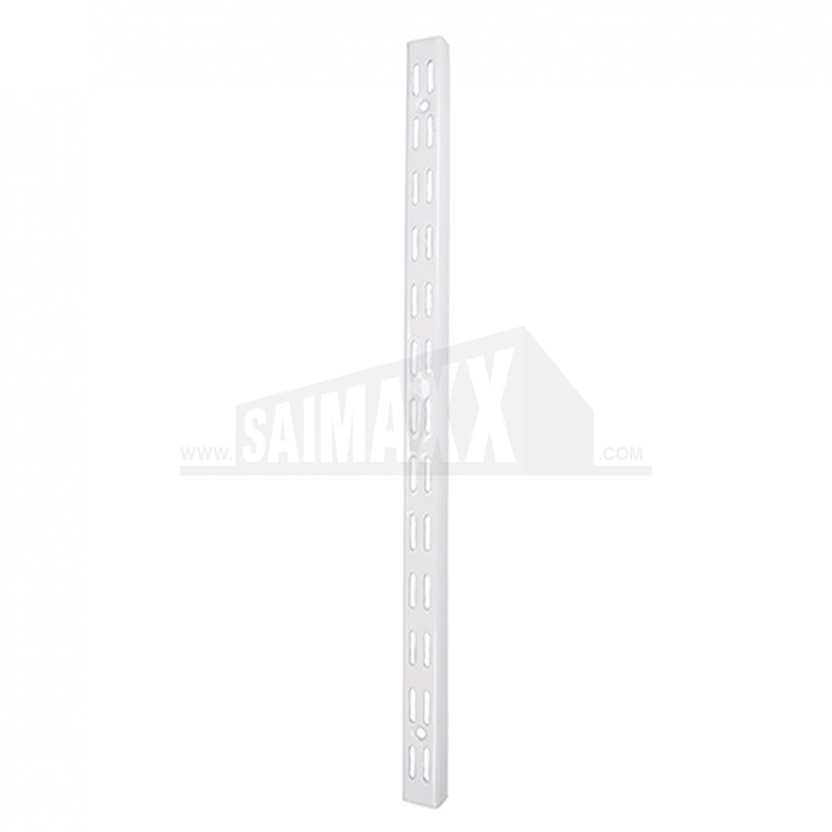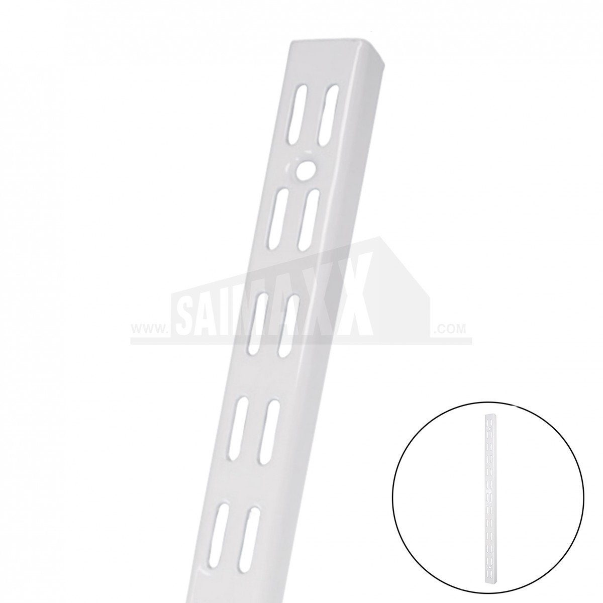 The Timco Twin Slot Shelving White Upright 1000mm is a wall-mounted steel rail for twin slot shelving systems. It provides the vertical support needed to position compatible brackets and shelves securely.