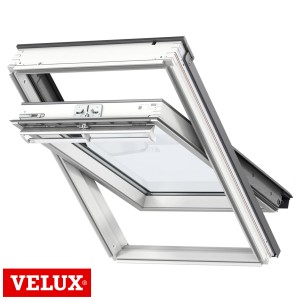 The Velux Roof Window GGL MK08 2070 78x140cm Centre Pivot White Painted Frame is a centre-pivot roof window designed to bring daylight and ventilation into lofts and pitched roof rooms. It has a white painted internal finish for a clean appearance in modern interior spaces.