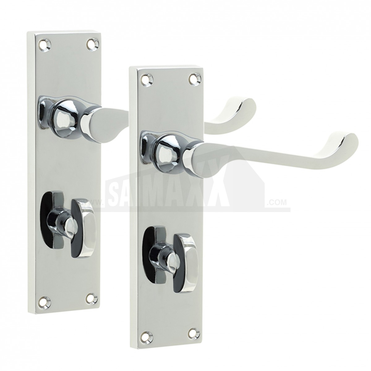 A pair of Victorian scrolled lever bath handles in polished chrome provides traditional styling for bath tap assemblies. They are supplied carded and designed to operate hot and cold bath valves.